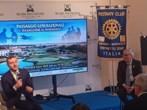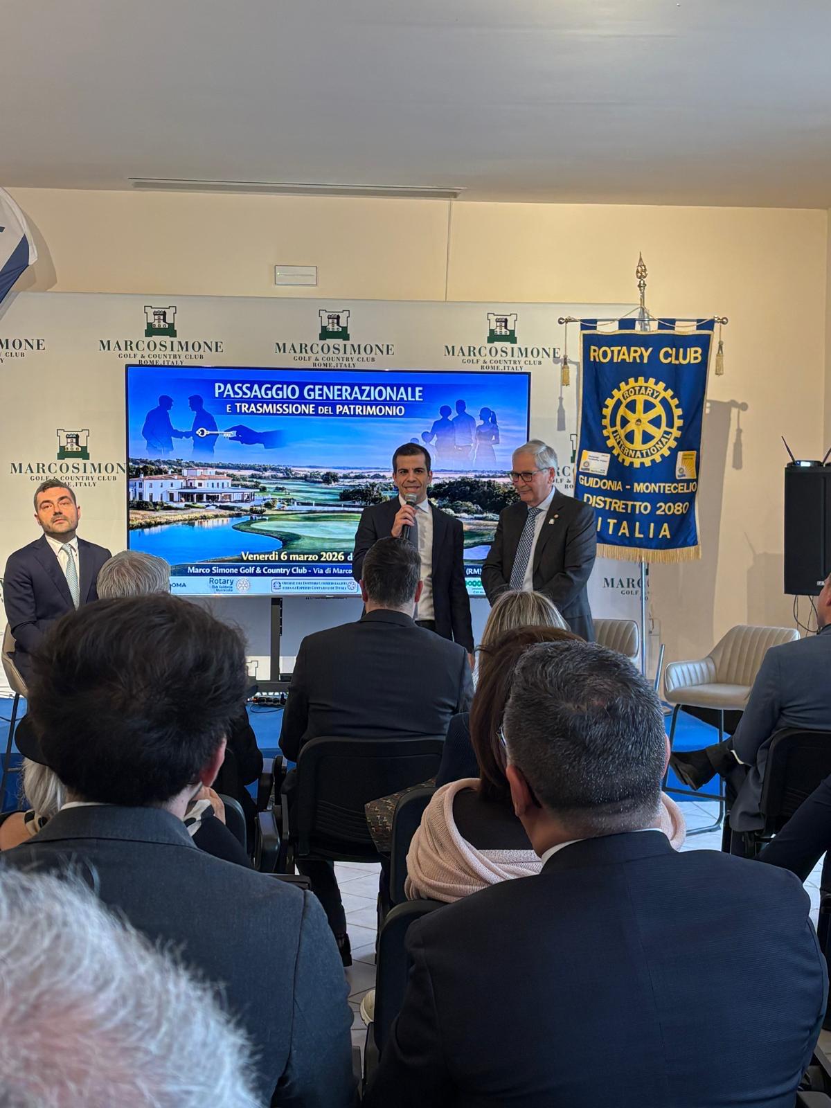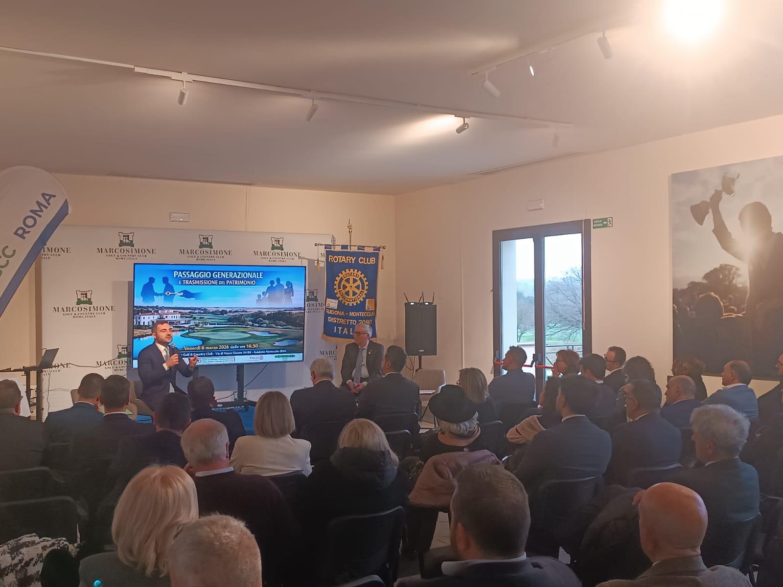 Grande successo di partecipazione per il convegno dello scorso 6 marzo 2026 dal tema “PASSAGGIO GENERAZIONALE E TRASMISSIONE DEL PATRIMONIO” organizzato dal Rotary e Rotaract Club di Guidonia Montecelio, in collaborazione con la Bcc Roma e l’Odcec di Tivoli, nella prestigiosa e famosa location del Marco Simone Golf Club gia’ sede della Ryder Cup di Golf nel 2023.