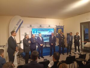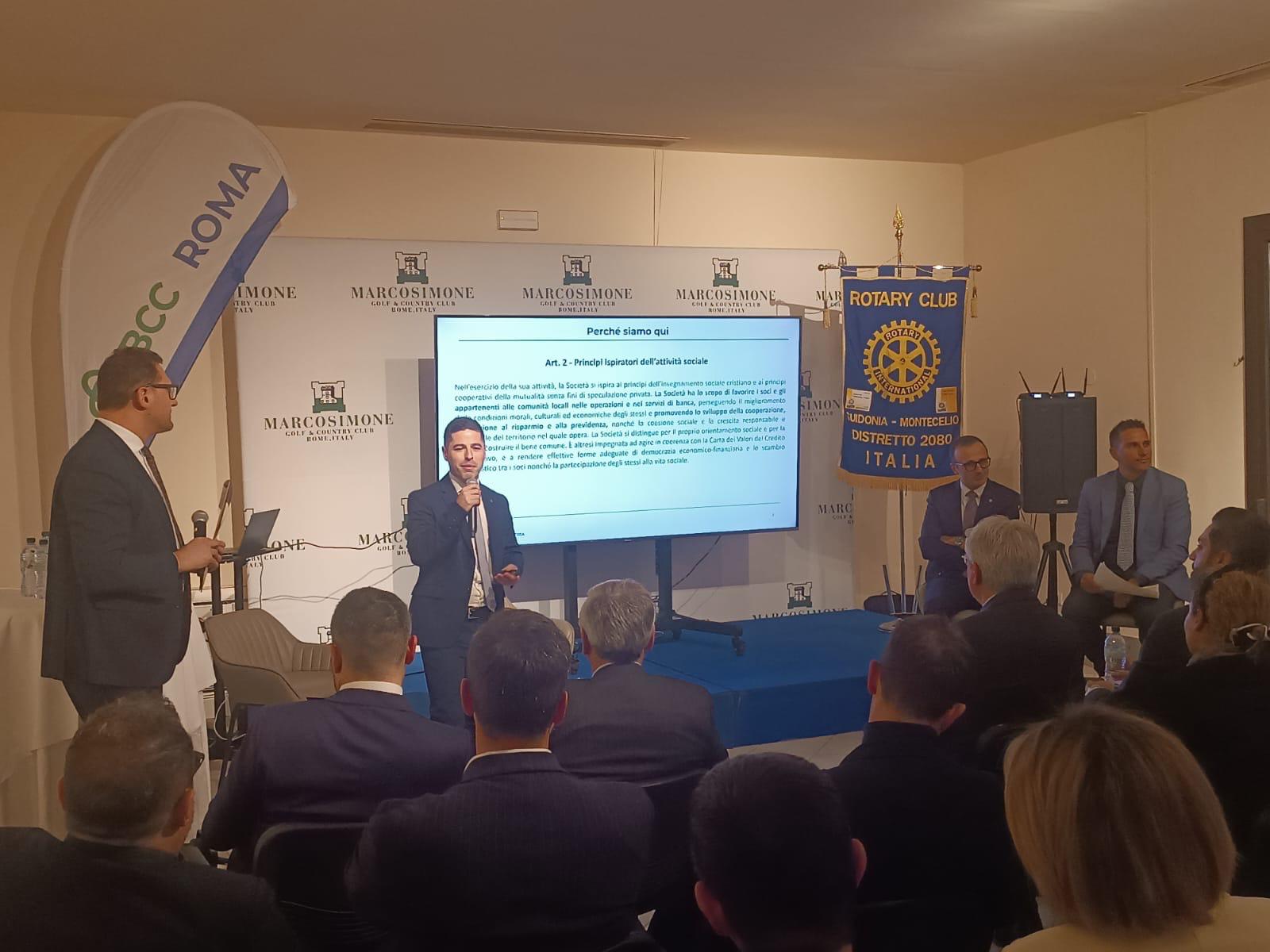 Il convegno si è poi concluso con la consegna del Guidoncino del Rotary Club di Guidonia Montecelio all’Ufficio soci della BCC Roma. magistralmente rappresentato dai Responsabili Andrea Brannetti e Francesco Marcorelli, e con aperitivo negli splendidi saloni della struttura golfistica.