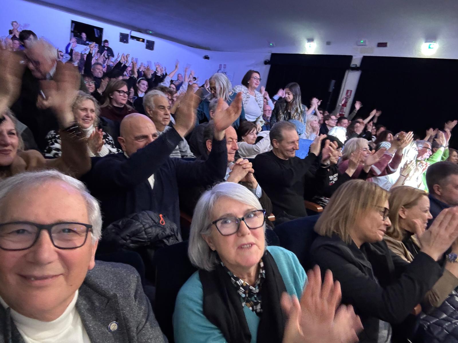 Domenica 15 marzo il Club ha passato una serata spensierata assistendo allo spettacolo di Dado “ Non Vedo, Non sento e straparlo “ presso il Teatro Imperiale di Guidonia . Con una cornice invidiabile di pubblico che ha riempito completamente in ogni ordine di posti il magnifico teatro, riaperto recentemente sotto la direzione artistica di Michele La Ginestra, l’attore Gabriele Pellegrini ( in arte Dado), ha entusiasmato con le sue performance , coinvolgendo il pubblico in uno spettacolo esilarante . Al termine dello spettacolo l’attore si è intrattenuto con il pubblico per ricevere il doveroso omaggio e scattare qualche foto. Il Club ha così raggiunto l’obiettivo di contribuire al rilancio di una struttura culturale della nostra cittadina, trascorrendo alcune ore in allegria e con vero spirito di amicizia.